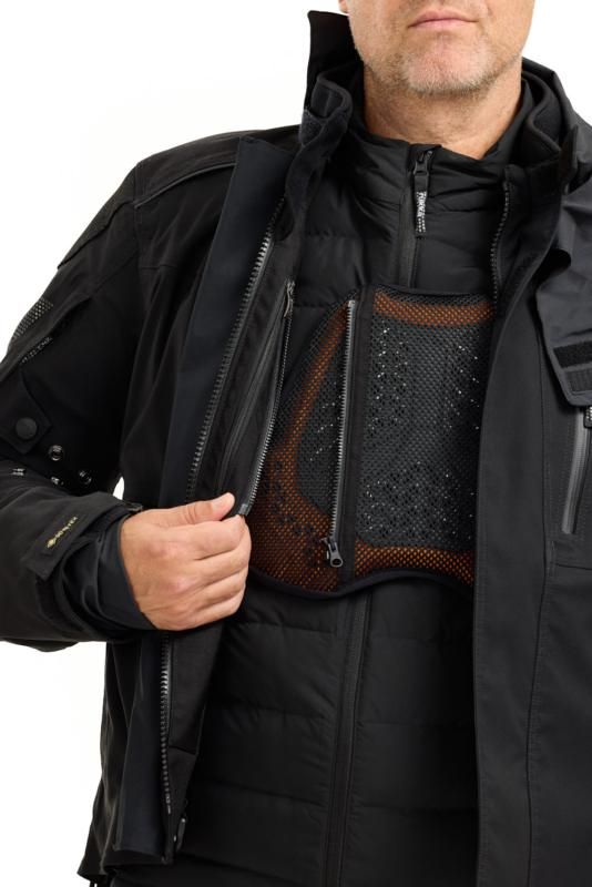 Rukka chest protector for men. Lightweight and breathable. Delivered with the mesh pocket adapter. The world's first dual-certified chest protector: certified to EN 1621-3 Level 2 (with hard-shell) and Level 1 (hard-shell removed). D3O® CP2 full chest protector, EN 1621-3:2018 Level 2.