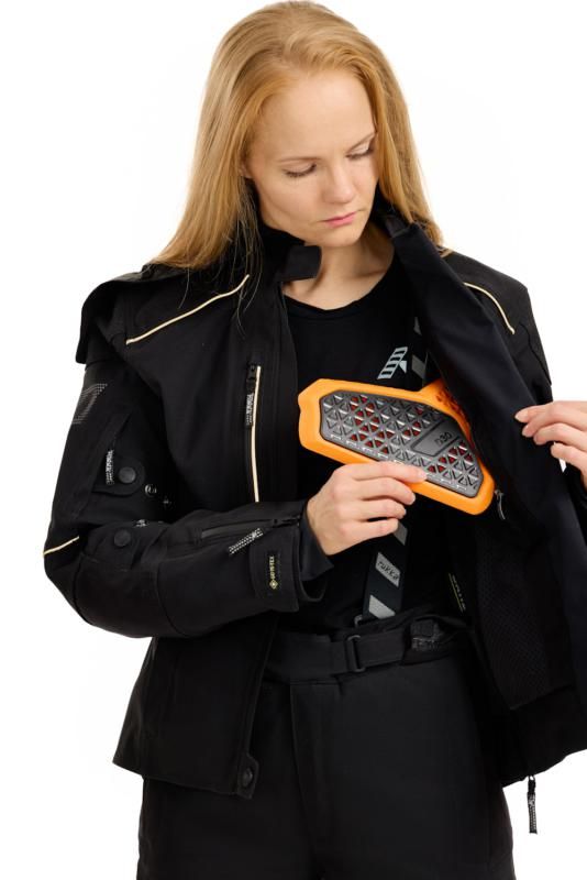 The world's first dual-certified chest protector: certified to EN 1621-3 Level 2 (with hard-shell) and Level 1 (hard- shell removed). D3O® CP2 divided chest protector, EN 1621- 3:2018 Level 2. Compatible with jackets with pockets for a divided chest protector.