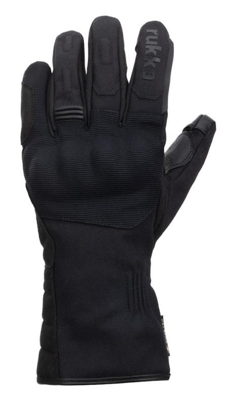 Rukka Gore-tex gore grip motorcycle gloves for men. Visor wiper on left index finger. Top touch sensitivity for perfect control with GORE-TEX® Gore Grip technology. Touchscreen fingertips on index fingers and thumbs. Elastic wrist with velcro tightening. Fully water- and windproof and breathable GORE-TEX gloves.