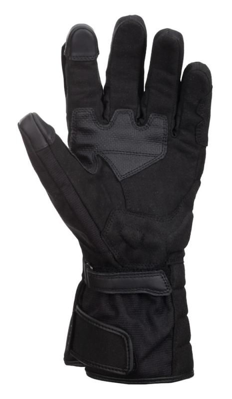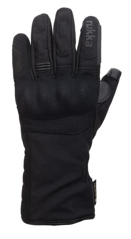 Rukka Gore-tex gore grip motorcycle gloves for men. Visor wiper on left index finger. Top touch sensitivity for perfect control with GORE-TEX® Gore Grip technology. Touchscreen fingertips on index fingers and thumbs. Elastic wrist with velcro tightening. Fully water- and windproof and breathable GORE-TEX gloves.
